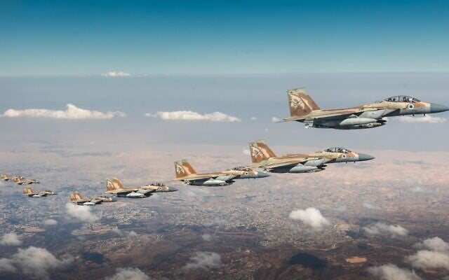 Israeli fighter jets also deployed locally developed self-defense systems to protect against enemy missile fire, further increasing survivability in contested airspace.